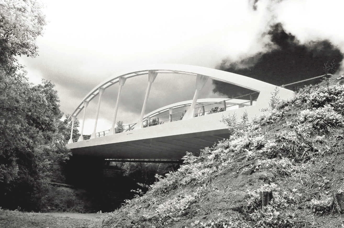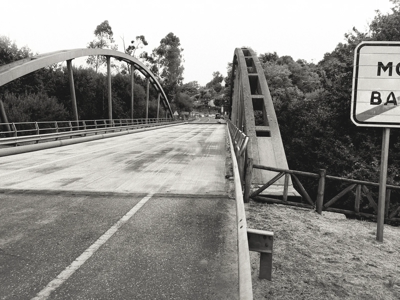 The Mondariz Bridge is located at PK 8+540 of the PO-254 road (Municipality of Mondariz–Mondariz Balneario, Pontevedra), crossing the Xabriña River. The structure is a 59-metre-span steel bow-string bridge with a total width of 13 metres. It consists of two steel arches with an internal tie.